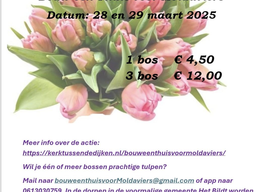 Verder lezenOp 25 en 26 maart 2025 gaat het bouwteam “Bouw een thuis voor Moldaviërs” tulpen verkopen. De opbrengst is voor