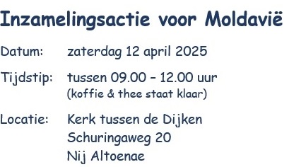 Zaterdag 4 oktober 2025: Hulpgoederen inzameling voor Moldavië