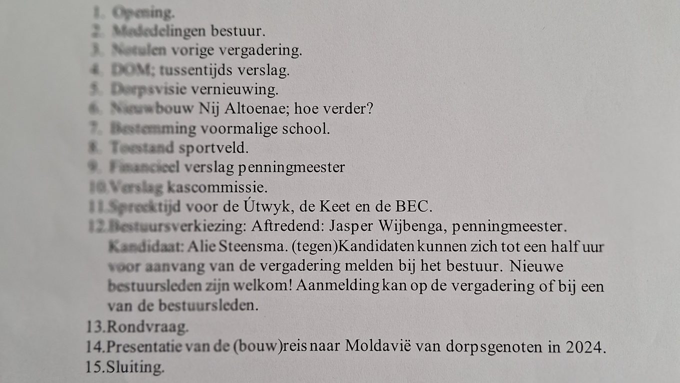 Vrijdagavond 28 maart 2025 ledenvergadering Plaatselijk Belang Nij Altoenae e.o.