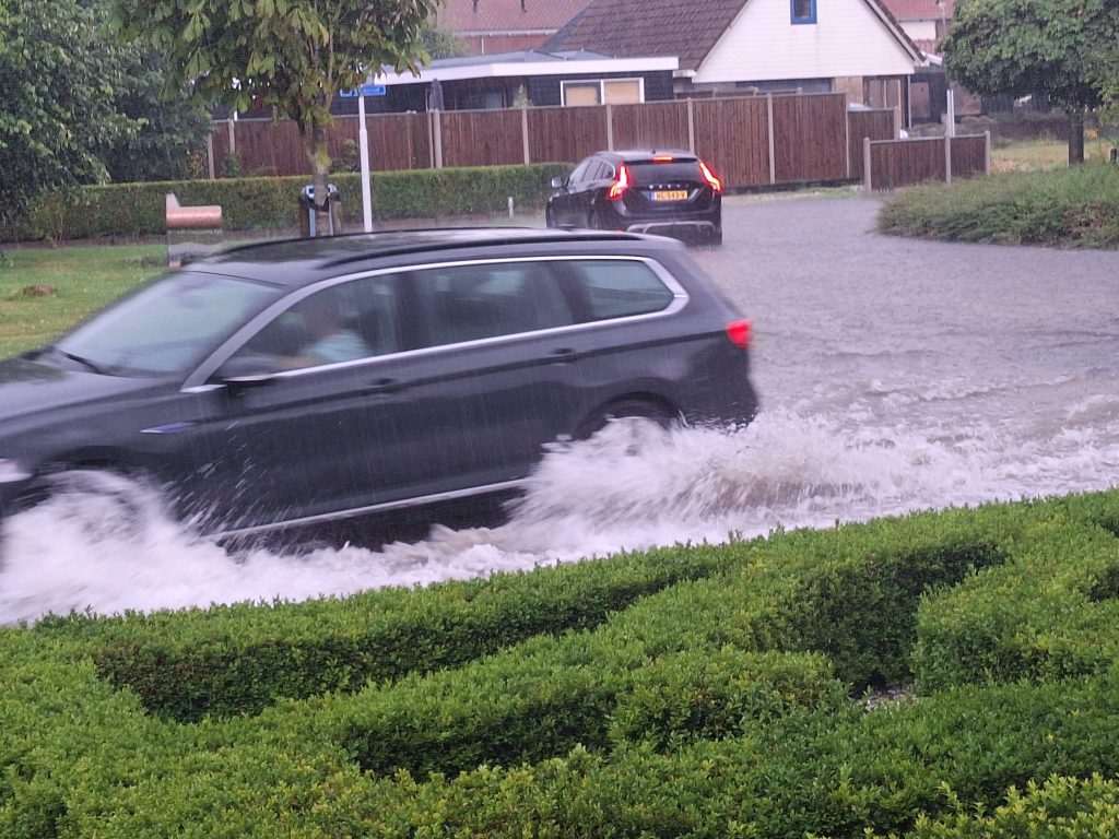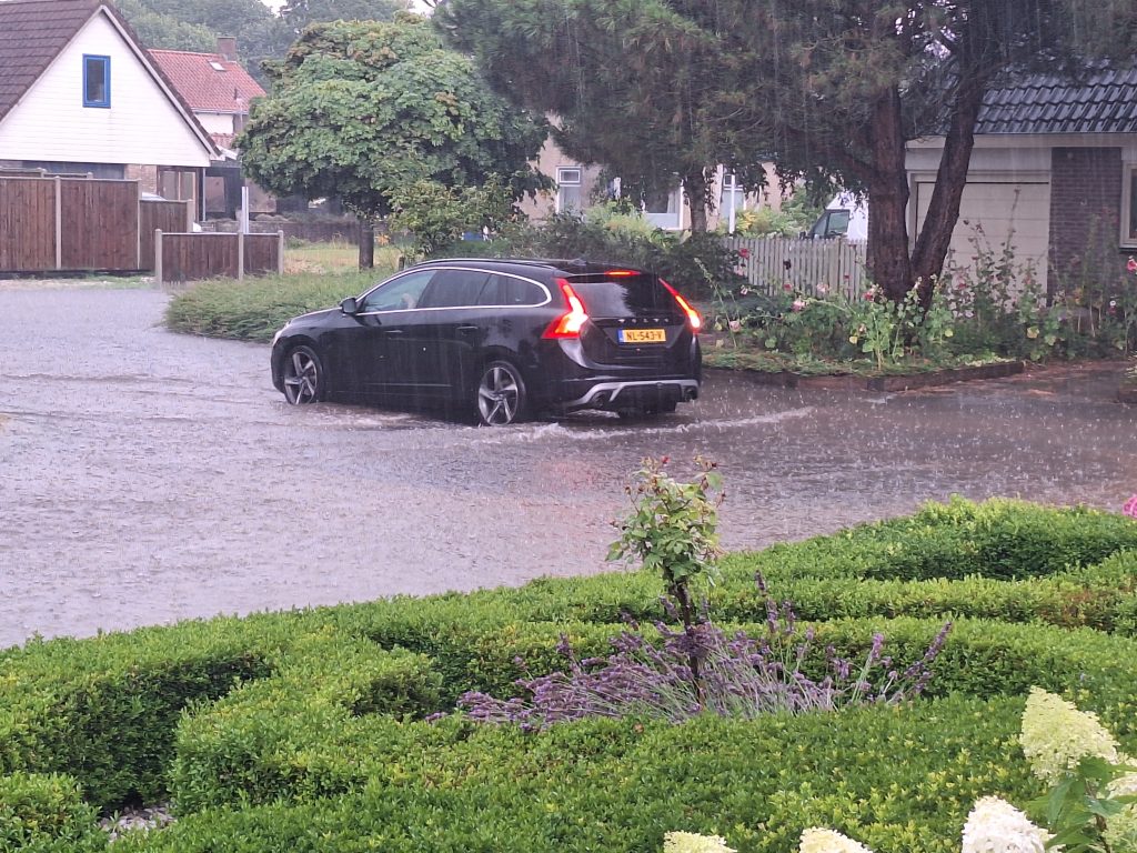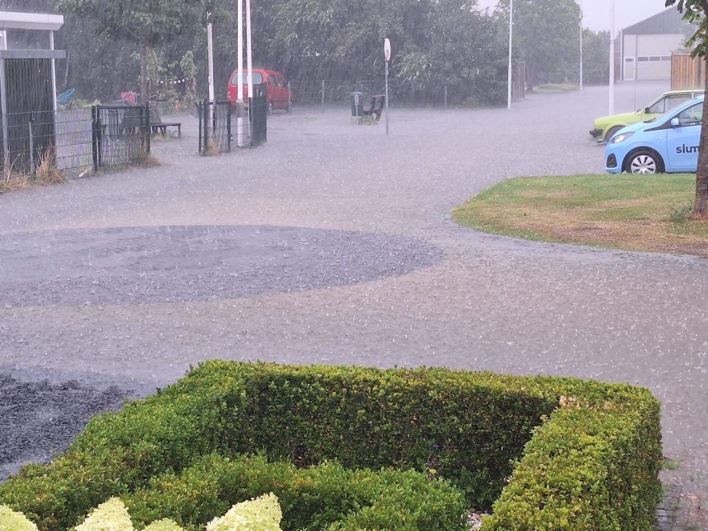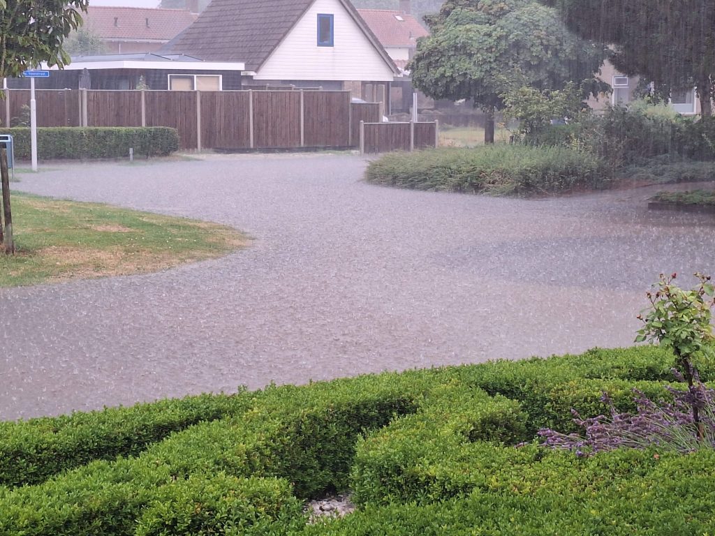 Na ruim een halfuur wordt het weer regen en zakt het water langzaam weer. Sommige inwoners hebben ook in hun woning wateroverlast. Met vereende krachten worden alles zoveel mogelijk schoongepoetst en gedroogd. Hopelijk valt de schade mee, al zal zo hier en daar wel een laminaatvloer en/of plinten vervangen moeten worden.