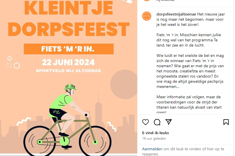 Kleintje Dorpsfeest op 22 juni 2024 “Fiets ‘m ‘r in”