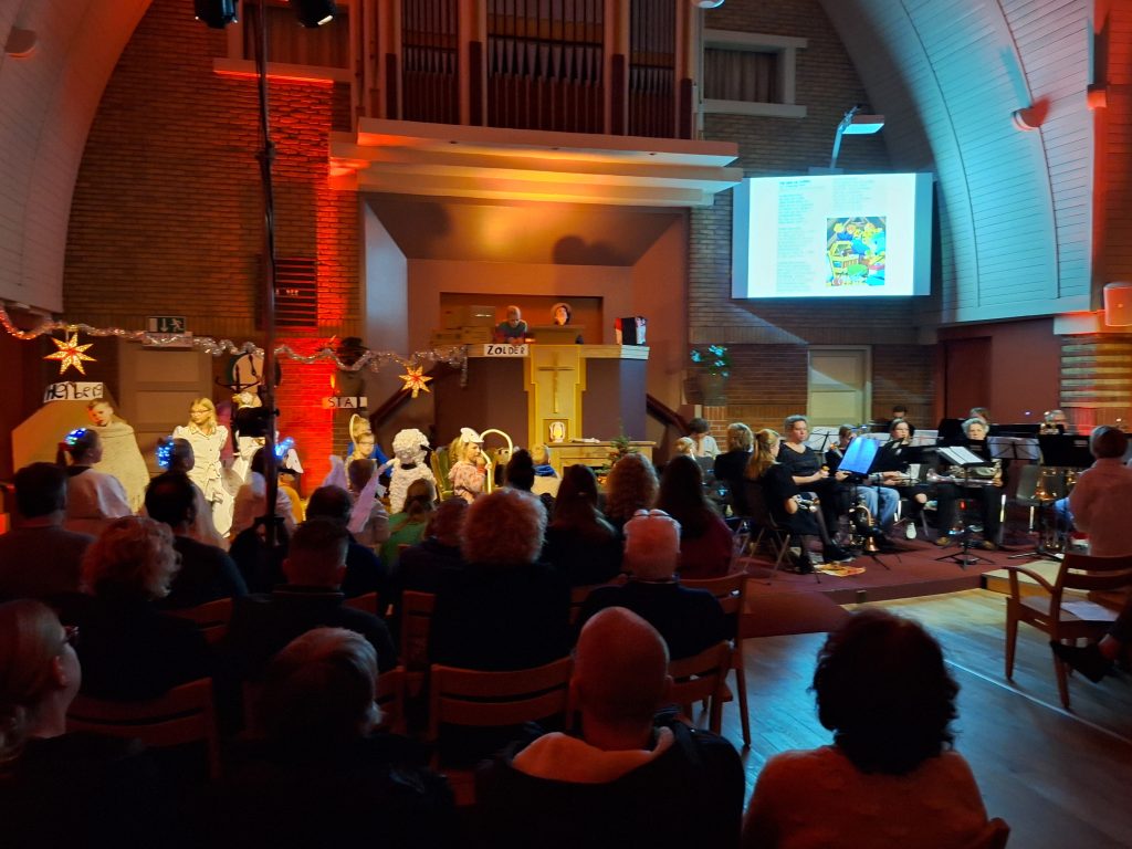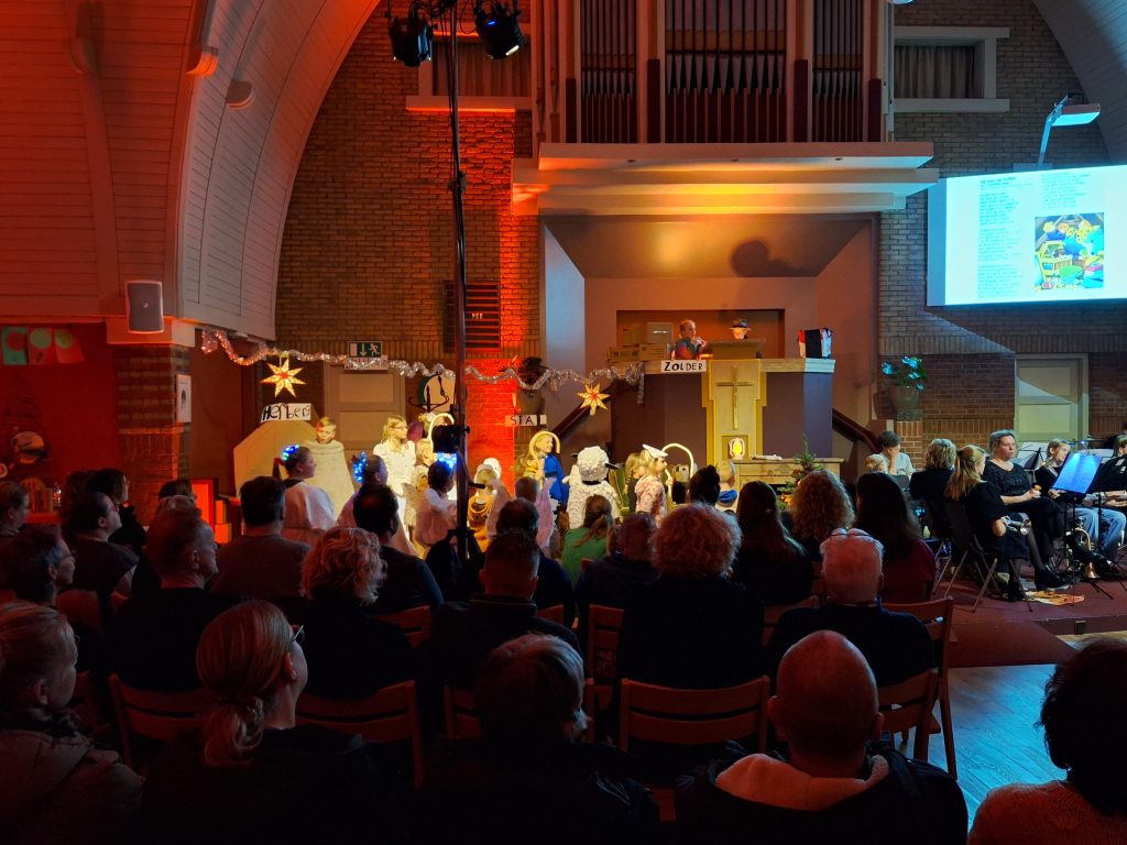 De kerk “Kerk tussen de Dijken” was afgeladen vol. De haiten, memmen, pakes, beppes, vrienden en dorpsgenoten waren erg benieuwd naar de opvoering van de musical “Met Opa Knoest”.