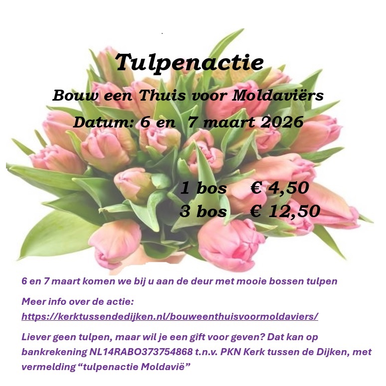 Liever geen tulpen, u mag ook een gift geven. Dat kan op bankrekening NL14RABO037374868 t.n.v. PKN Kerk tussen de Dijken, met vermelding “tulpenactie Moldavië”. U kunt ook betalen o een gift geven met de QR-code.
